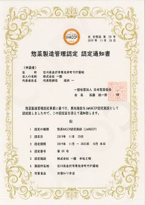 一般社団法人日本惣菜協会より、惣菜製造管理認定としてHACCP認定施設の認定証をいただきました。
