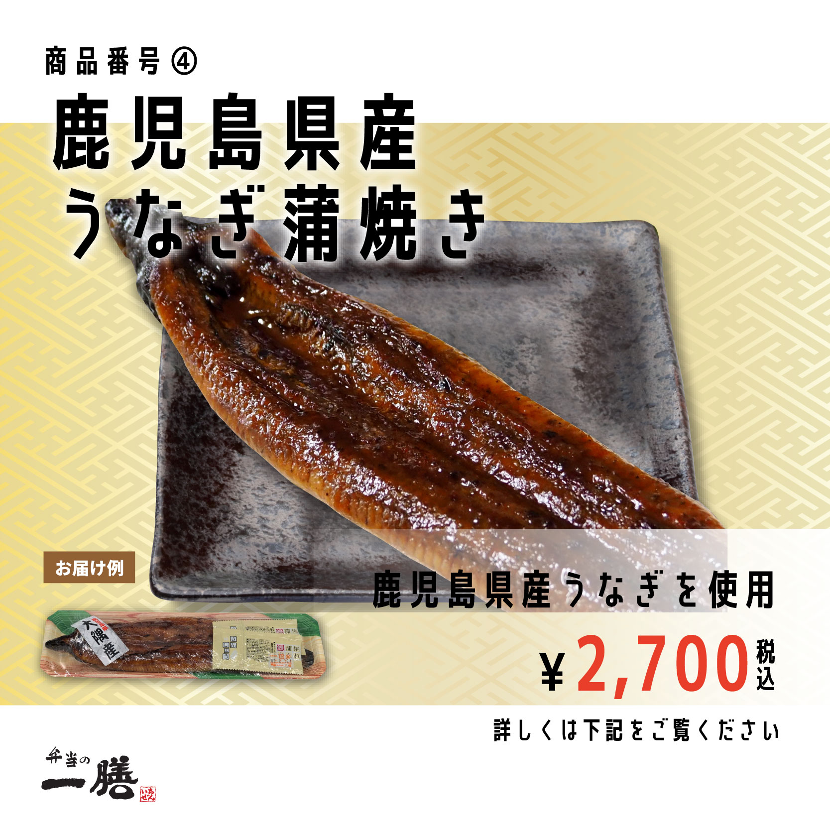 商品番号④ 鹿児島県産うなぎ蒲焼き 税込2,700円