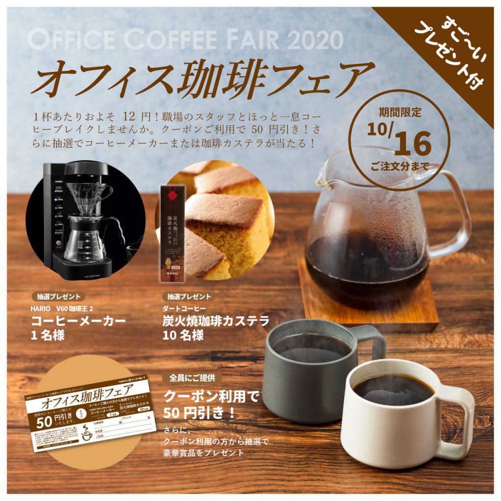 クーポンご利用で50円引き!さらに抽選でコーヒーメーカーまたは珈琲カステラが当たる!