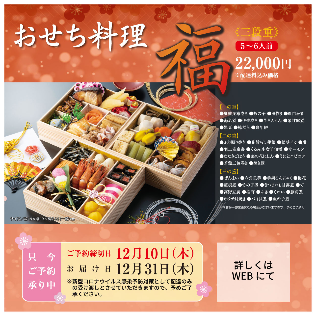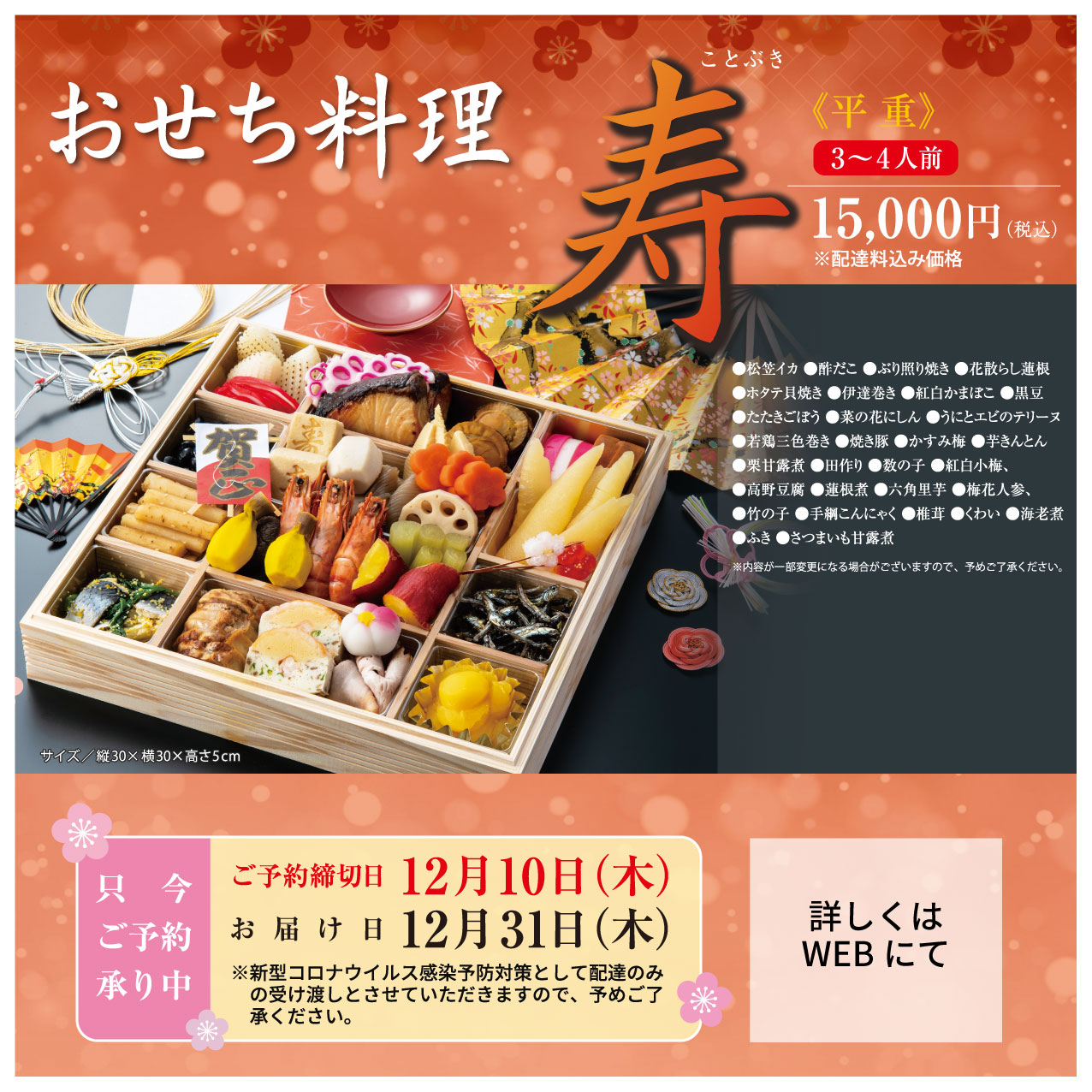 料理人が心を込めた手作りのおせち料理をご賞味ください。新しい年を健やかに・・・